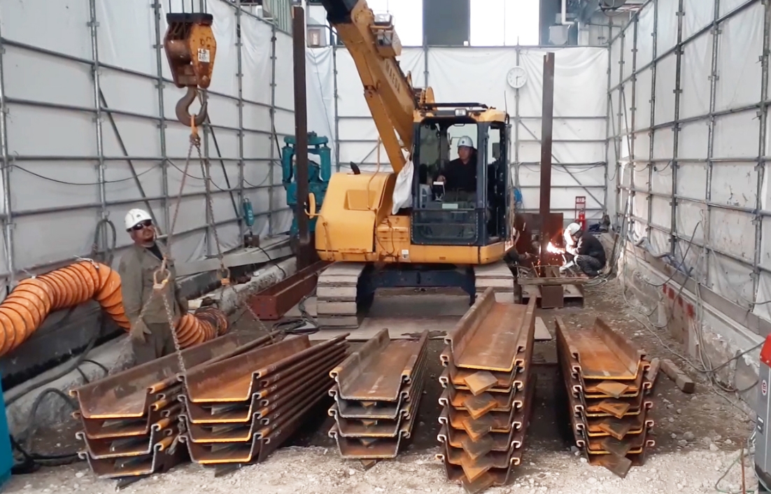 仮設工事では、鋼矢板打設圧入、仮設橋梁工事、山留工事など、大規模工事にも対応し、安全で確実な工事を提案・施工いたします。